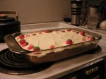 yellow cake with butter cream frosting and…candy corn pumpkins on top!