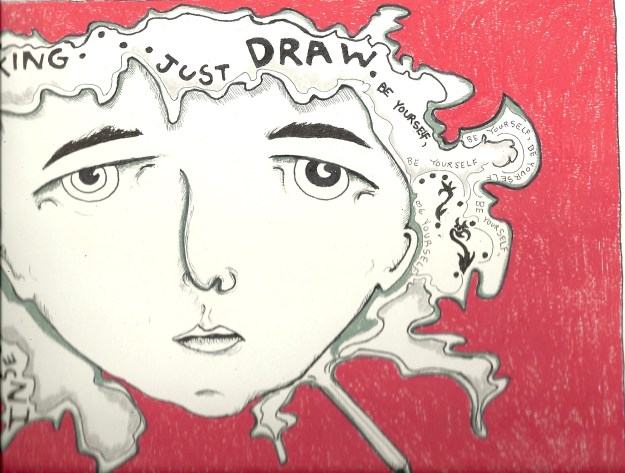 At least, that is what’s helping me these days. Instead of emotional outbursts about fears and jealousies and whatnots, I just tend to refocus my thoughts and draw something that’s going to take me away from those horrid thoughts. I think that it works, unless I get into one of those moods about my drawing. Which happens a lot. But lately, I just draw what I’m thinking about and don’t care who sees it. And that’s the attitude to have. I used to think, “well, I’ve taken art classes everything I do should look up to par with other artists, etc. ” so I would give up when something wasn’t really perfect. And I think that practicing helps and when you don’t practice and give up, then you can’t really be trying. And at least I’m trying. And enjoy my code mushitudes these days instead of insecure attitudes.
