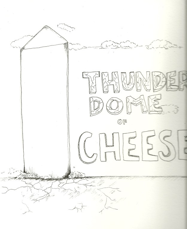 Yes, that’s correct. It’s a thunderdome of cheese. It has erupted from the boils of the earth! Just when you thought that the moon was a wheel of cheese, well, that’s not entirely true. You see, the moon was created from the earth. And if the moon is a wheel of cheese, then the earth most be made of these cheese stuffs. It has come thundering up! probably in the middle of Wisconsin’s dairy farms. Yes, well, how did you think they made such wonderful cheese? From cows? Huh…well, you thought WRONG. It’s earth cheese. And it’s gooood.