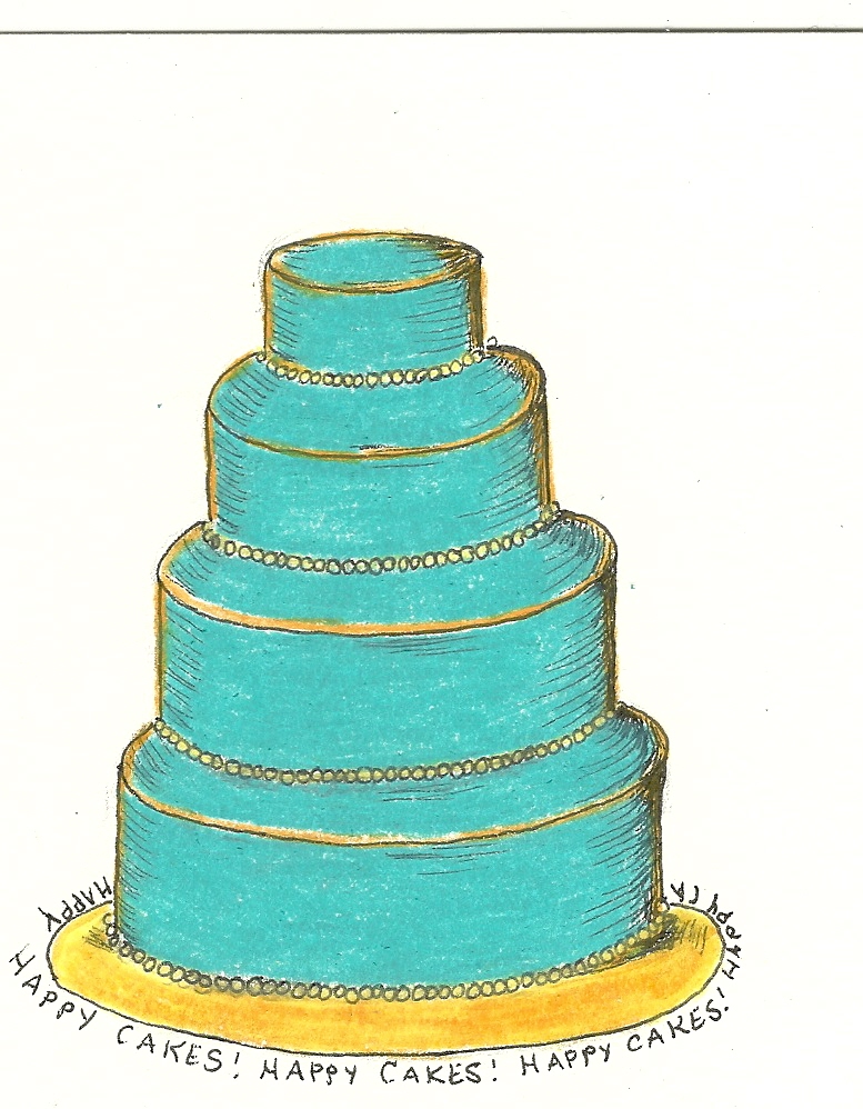 Everyone loves happy cakes! I think any cake really. I have never seen a cake that wasn’t happy. Or didn’t make someone happy (unless it’s fruit cake…eeeh). If I could perfect one thing (besides drawing and painting) it would be baking and decorating cakes. I think that would be a fun job. Especially at one of those specialty cake shops where you can really let the creative juices fly. But as it is, I’m stuck at a lousy job being less and less creative. It’s pretty much boring. Oh my gosh, it’s boring. All I can think are crappy thoughts while I’m at work. But…I am working on the less crappy thoughts. So I try to interact with my surroundings or jot down little drawing ideas that pop in my head, code mush stuff instead of the lame stuff. But I noticed yesterday as I was working on paperwork, everyone was congregating in the break room. And you know what they were congregating around? CAKE. a really large, colorful, someone-really-took-their-time-on cake. It was HUGE. And everyone who would walk by the break room had to stop and get them a slice of cake. Even if they were busy, had 5 minutes left on their shift, even the managers couldn’t help themselves. They were getting them a slice of cake before it was all gone.
