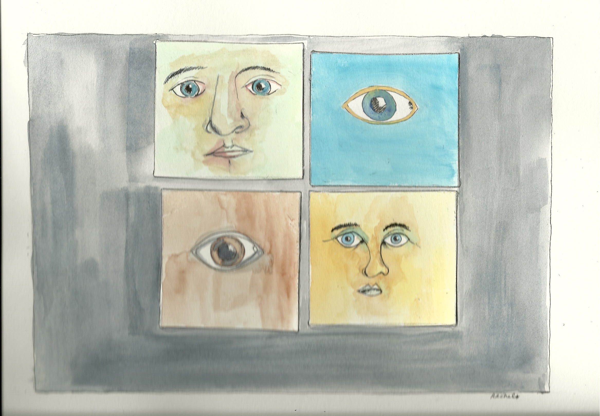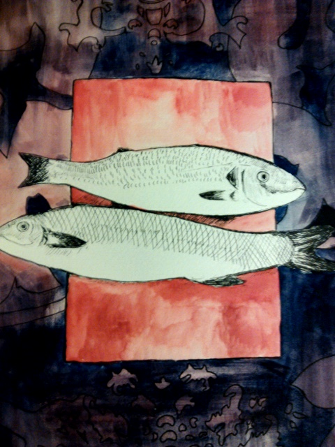 So…to take a break from my failing series of faces (referring to last post’s drawing), I went back to more dreams of fish. and it’s not such a loss because it gives me practice on drawing fish and color schemin’s (I made a word up)…so yay for me! I am getting better at drawing everyday if I practice. And this is from someone who did take drawing classes in college. and drew incessantly in high school..SO..I hope you like it. Now, I just wish I had taken painting. But for code mush this is okay. Here is the painting from another angle: