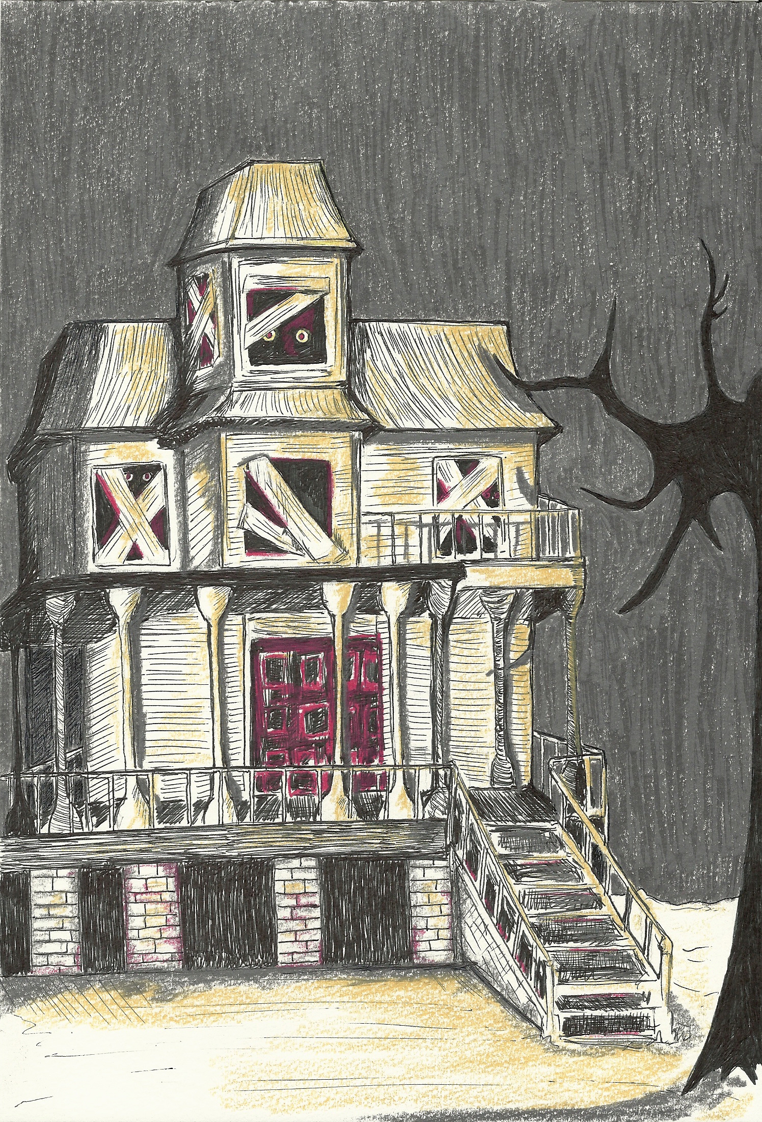 Beware of the house with the red door… something lurks inside! I see a few pair of eyeballs and that door…that door, the color of BLOOD. The moon shines an ominous glow onto the house, where passer-by’s shutter, feel the hairs rise upon their backs. Beware of the house with the red door!! Something eerie dwells inside!