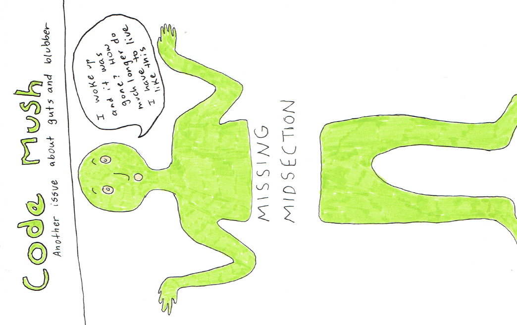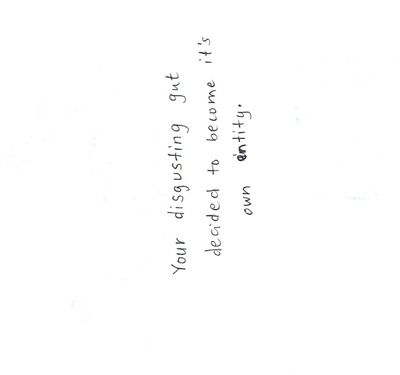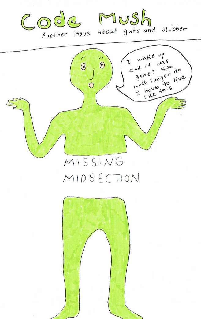 Missing Midsection Leave a reply More Tales of Guts and Blubber Things are looking kinda scary this month of course. Therefore, why wouldn’t a gut disappear off a body and start becoming its own entity? Read on to find out what happens!! Share this: Click to share on Facebook (Opens in new window) Facebook Click to share on X (Opens in new window) X Like Loading... Related