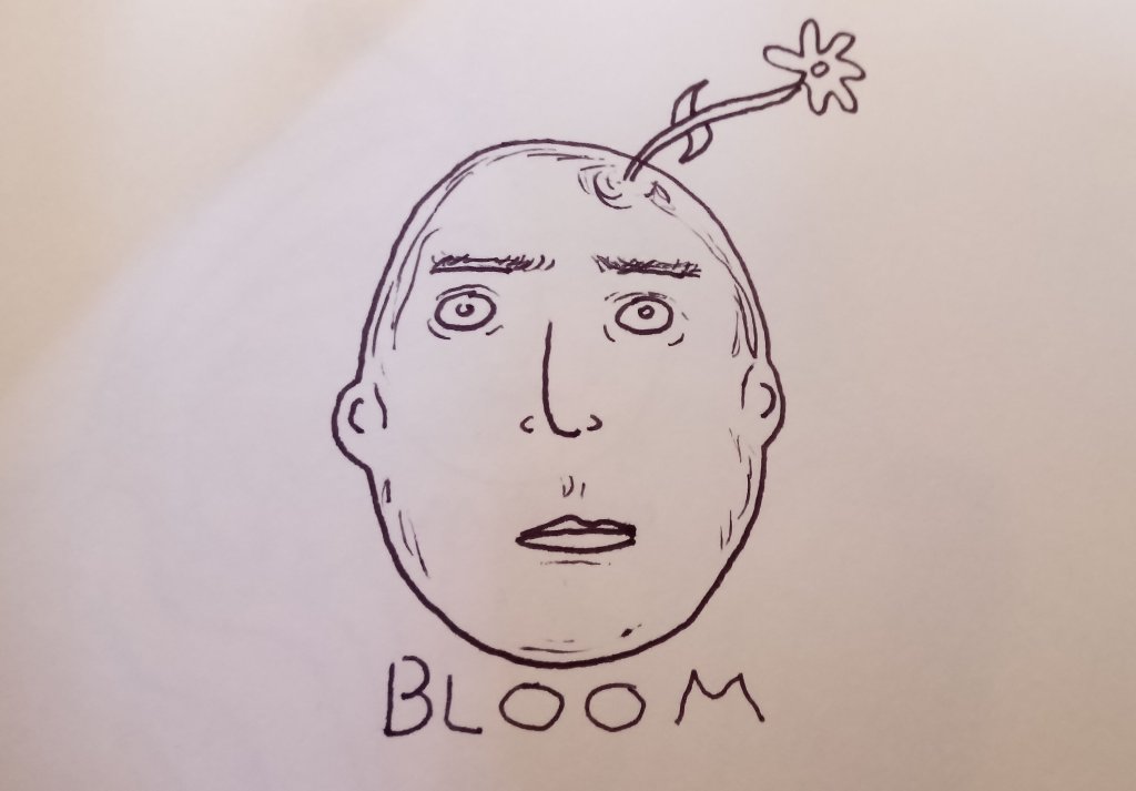 And here is the first Bloom Head, well I called it Grow back then…this has to be from 2010. Now, he looks a little more livelier. And the scan made it blurry and I really don’t know if I have the original drawing anymore. Growth is often blurry then!