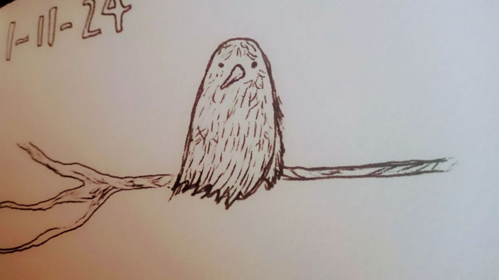 Of course, since I have been obsessed with drawing birds this month, to be visited unexpectedly (even if it was unintentional Birdo) by one has got me so thrilled!! I am sure there is some good omen to it right? I’m not sure, but obviously he was looking for mice (or kittens) outside the dumpster and wandered in the vents in the ceiling.