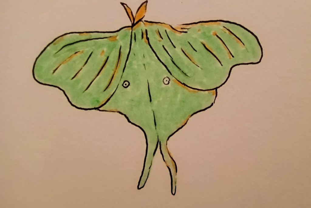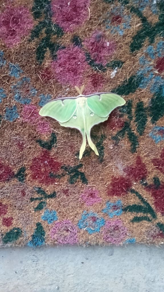 And then as I was cleaning up my ridiculous cats mess (because he too had a nocturnal morning, or night, of zooming and making loud evilish sounds and crashes), I go outside to take the trash and as I’m shutting the door I notice a moth hanging in the crook of the door. I realized too late and smashed the door onto one of its wings. Oh dear! I pick it up and it’s still fluttering. I bring it inside to show the boys and we lay it gently down to see if it was still okay to fly. Well perhaps, I noticed it moving some more but it could be cold? I hope so.