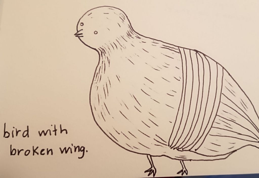 These birds were inspired by a movie I recently watched where the bird has a broken wing, but gets mended by the characters and he’s just part of the theme throughout the movie. Anyway, it’s been a while since I’ve doodled a weirdo birdo so here you go. I like the latter two better even if the face looks slightly weird. It’s cutesy.