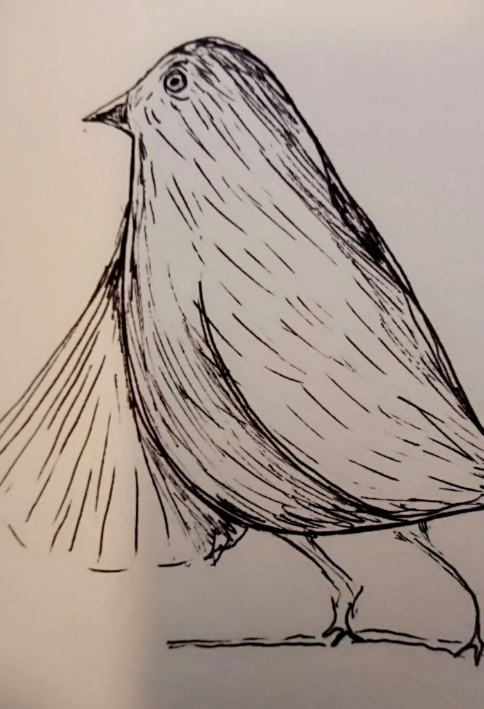 Crazy lady and birds. It’s always a crazy lady and something. Cats, or just plain crazy. I’ve hit the deep end. I’m filling up my new journal everyday with a birdo or two. And romantic thoughts of nature and life! So you must suffer the onslaughts of one Birdo after another Birdo and so forth until I’ve exhausted my hyper fixation. You’re here, you’ve known this, I am repetitive. There is no linear progression. Just loops and loops of the same mumbo jumbo. And again and again. Ugh, dumbo jumbo more like it.