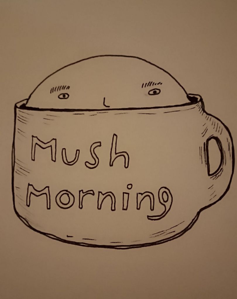 Sometimes mush mornings start at 10 o’clock at night, sometimes at 3 in the afternoon, when your sleep was more like a power nap and you need to rush to get the kids from school. Sometimes it’s a mush morning at 3 am with the night so quiet you can sit and think and savor your warm cuppa joe, before the chaos begins. Whatever time it is, be a little mushy! Write what you’re thinking and sip sip sip. Then doodle a thing or two. Meditate. Or not. Make a pancake breakfast at night. Sun salutations or moon salutations, it’s an ever ending circle turning, turning ’round. Yin yang, night day. There’s not much left to ponder really. I have begun to love each day I wake, it’s a miracle we’re all even here right now, so I’m learning to be grateful just to be breathin’ breathing, breathe…
