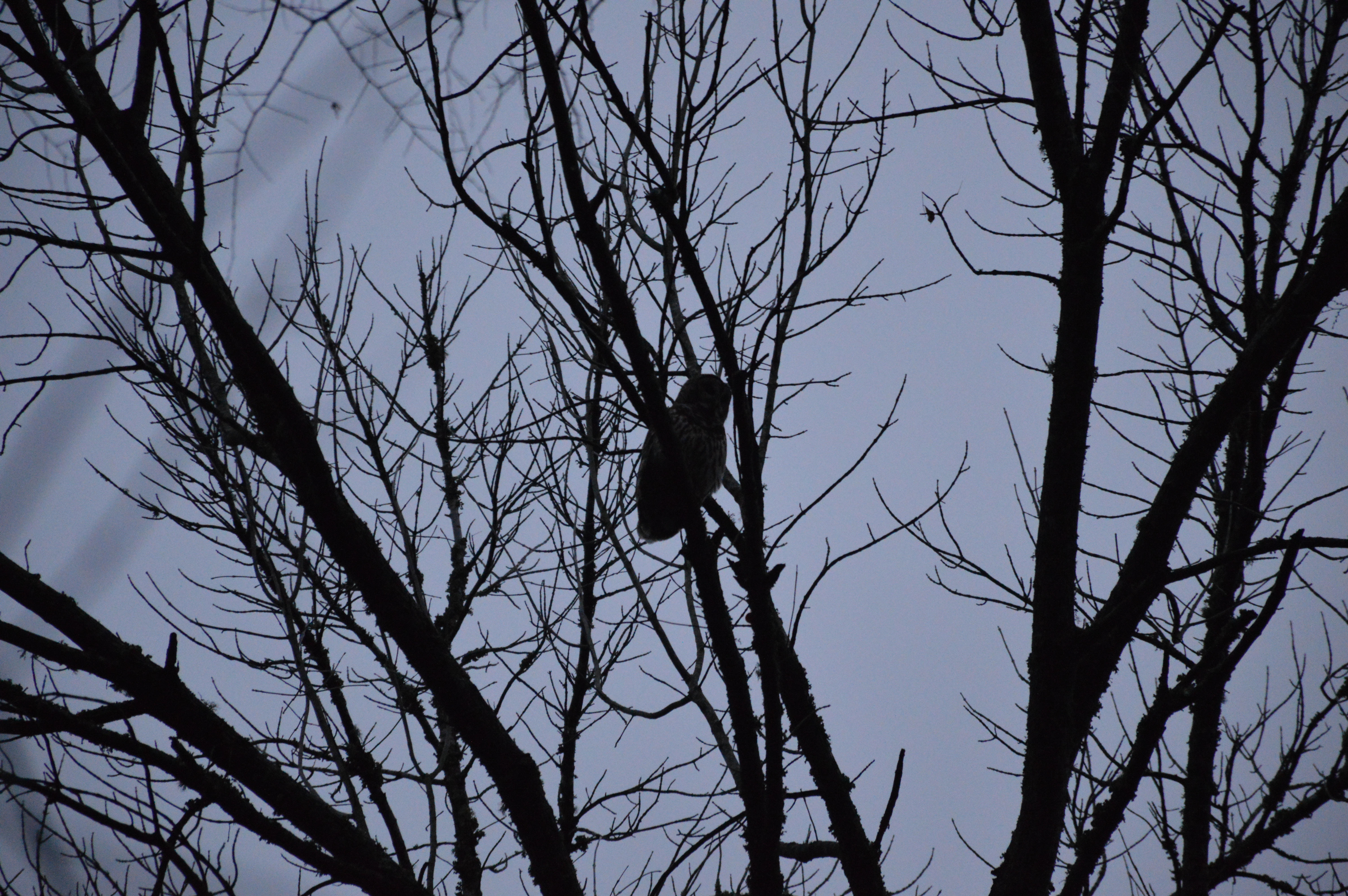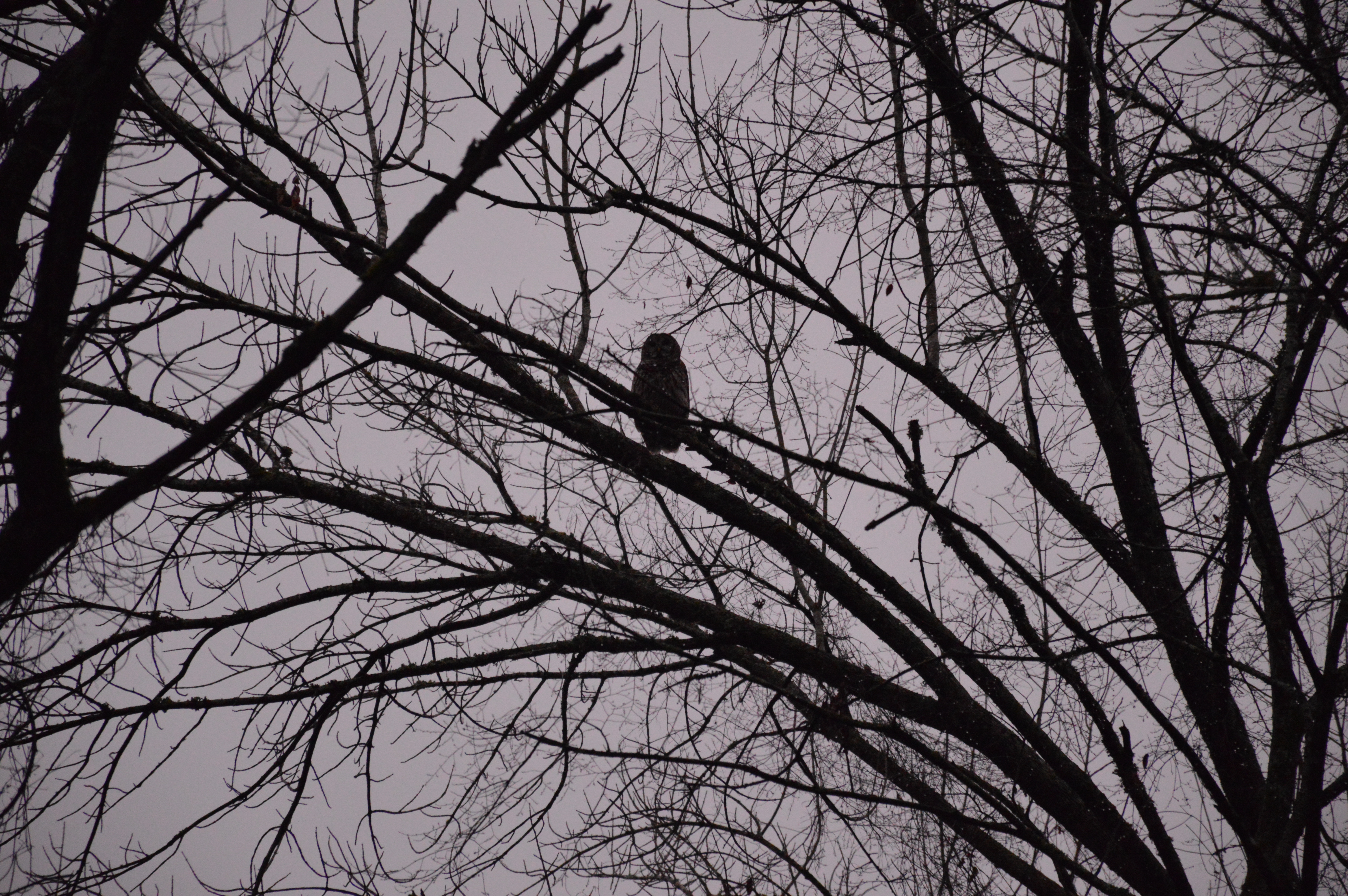 The only cool thing is I finally caught a barred owl in the trees! So I was super happy and went trudging through the mud trying to get a glimpse of him. He was enjoying a delicious meal of mouse.