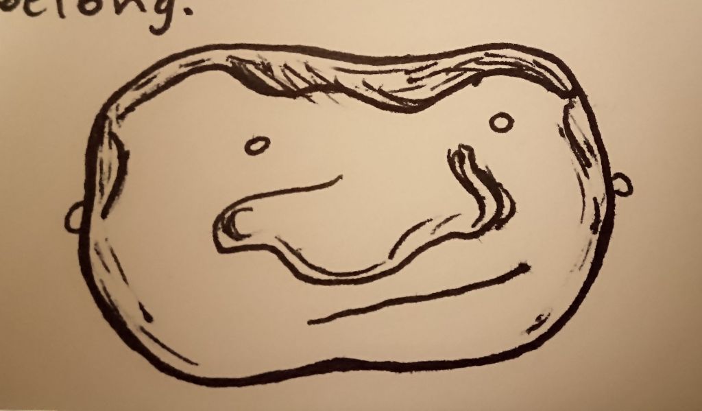What constitutes a blob? Misshapen, mass of a face, with a look of dismay or delusion…I think that constitutes as a blob.