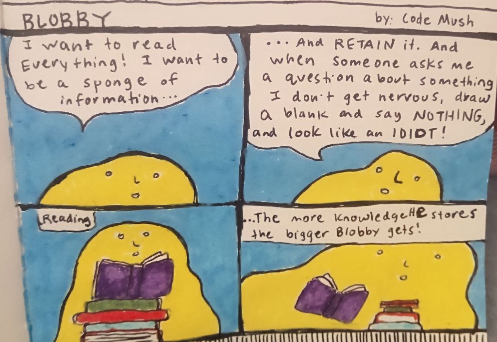 I’m using my son’s Posca markers that he insist he have. I must say I love their paint like quality. I must get more (for myself). And this was just a random writing in my journal that I thought would be cool if Blobby was saying this. And absorbing and expanding with all the information! (And imagination). More to come I think!! Well, of course more blobs to come, they’re really all I draw…
