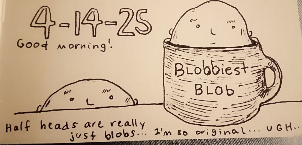 If you’re new to the blog then you probably haven’t seen a half head yet.They’re basically the quiet, unassuming mushiest person but for some reason have the tendency to hide because of their feelings, because their being is so strong. And you wouldn’t really know this by their blank expression. But these blobs, may or may not have expression though. I see a little bit. So maybe they’re different, or maybe they’re just coming out of their shells. However they’re all different so it’s hard to say where all this is going! Probably no where and I’ll forget about drawing blobs in a couple of days or two ..