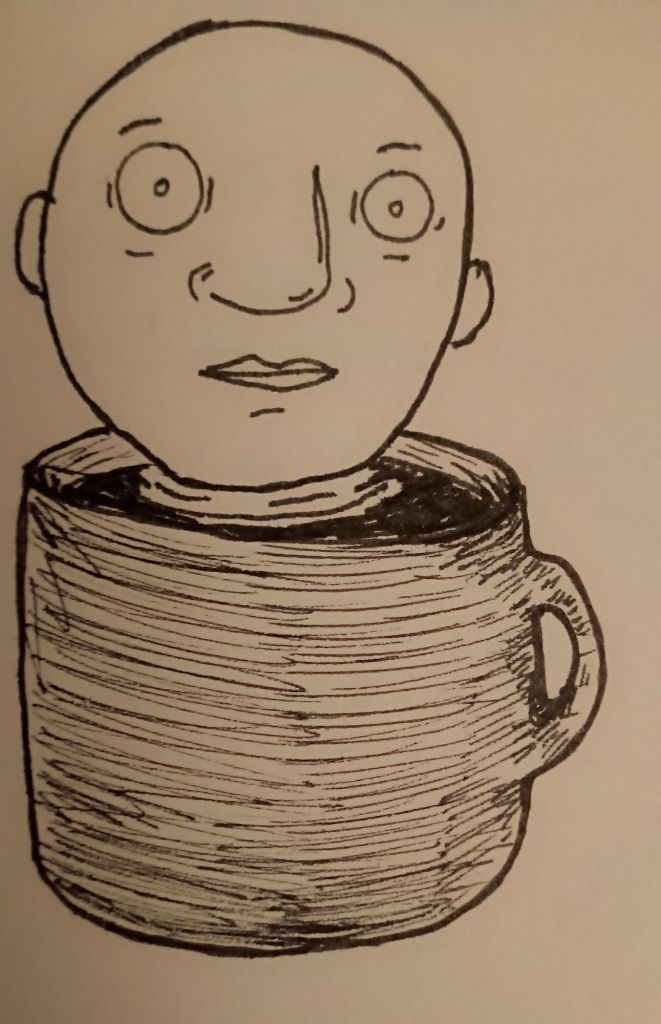 It’s been a long time since I’ve done a floating head of dismay! And why not it floating in a cup of coffee… He’s definitely had too much coffee (man!).