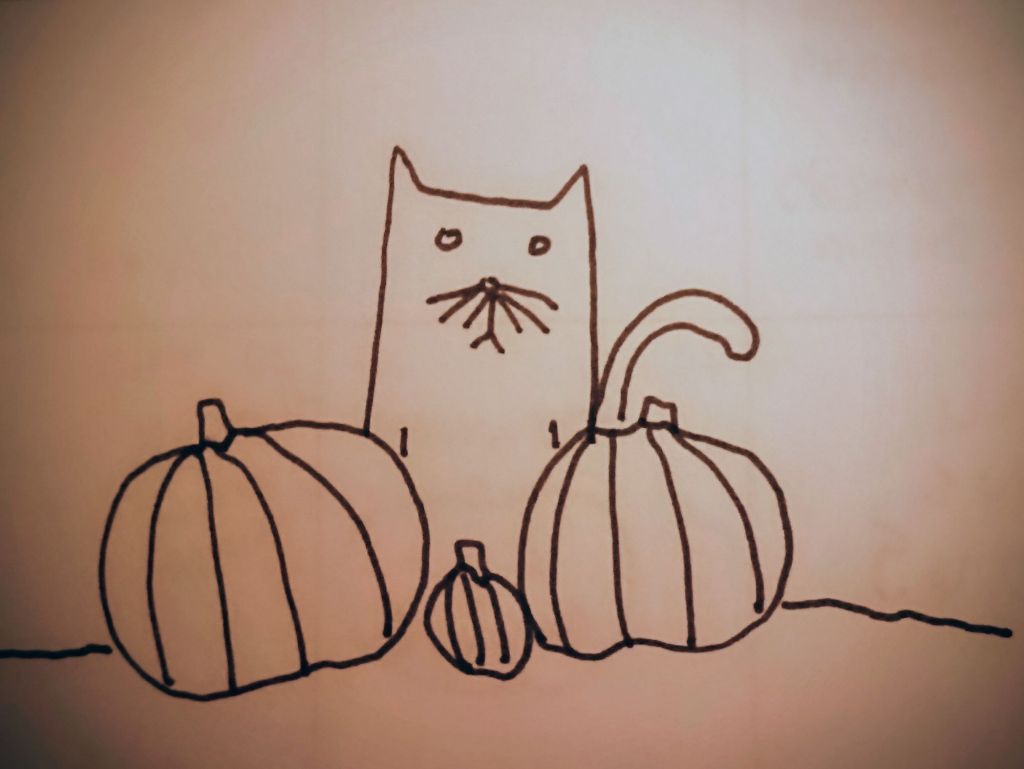 I realized I haven’t done any Halloween doodles at all this season. It’s rather unusual for me, since last year I made bat origamis, and the costumes for the days of the week for the days of the week guys. You know Monday the Brain, Tuesday the cat, Wednesday the dog, Thursday and Friday I don’t even remember who they were because I kept changing it. Friday was Frankenstein for a while …but even if you’re unfamiliar with these doodles, have no fear, I start something and I get sidetracked and think it’s dumb and stop drawing them. But if you’ve come here for coffee cups, we’ll you’ve come to the right place.
