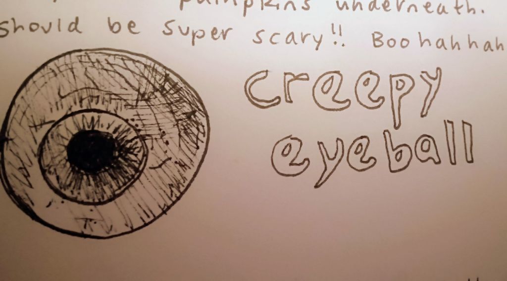 The creepiest eyeball you ever did doodledMushed PumpkinMush Brain dressed as a hippy.There’s a giant spider in thereMy son’s jack-o’-lantern Happy Halloween from the dark side